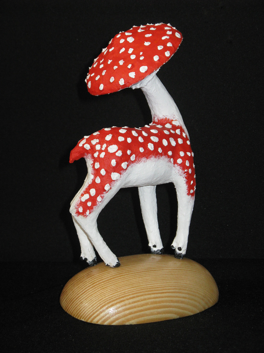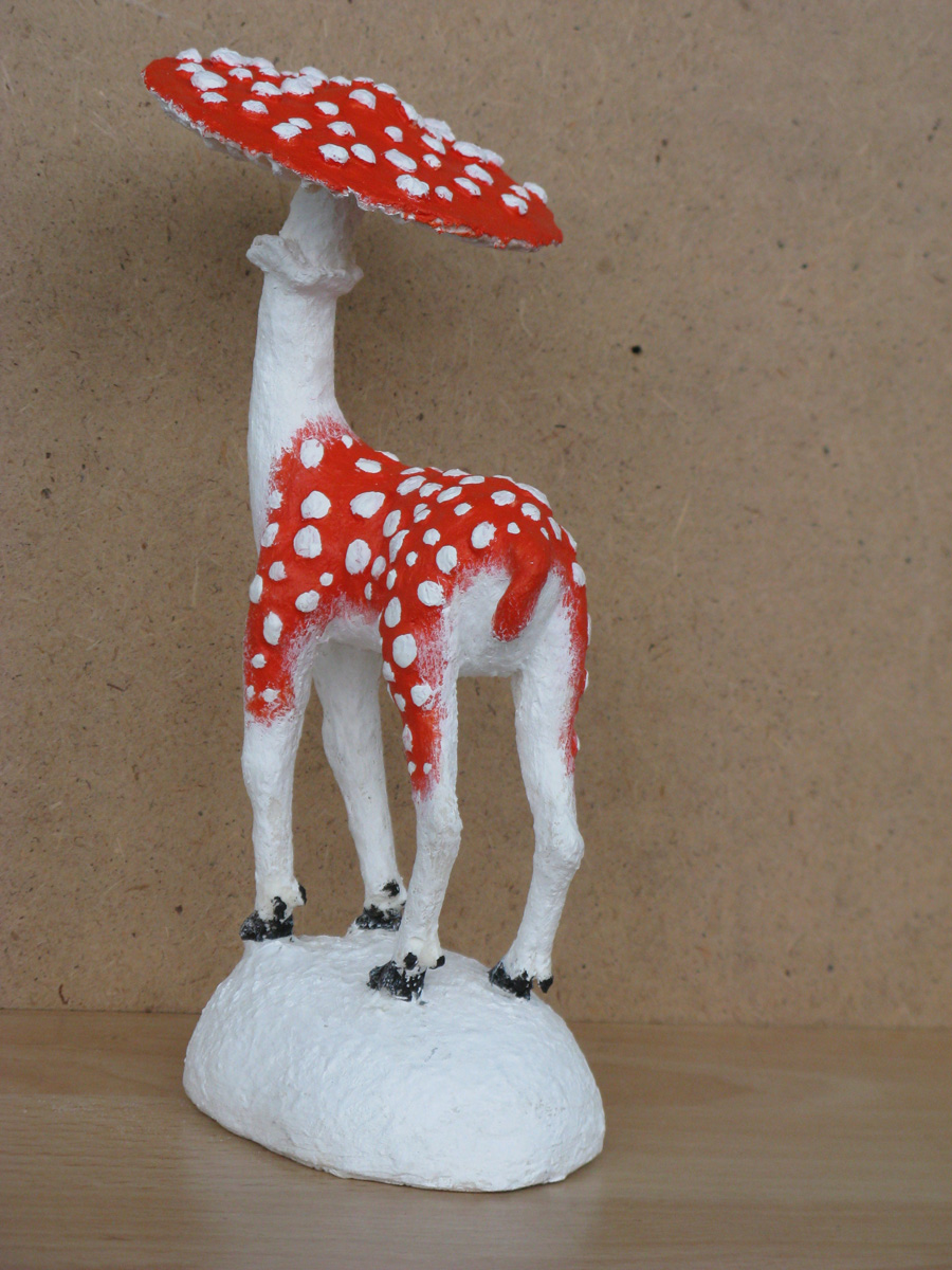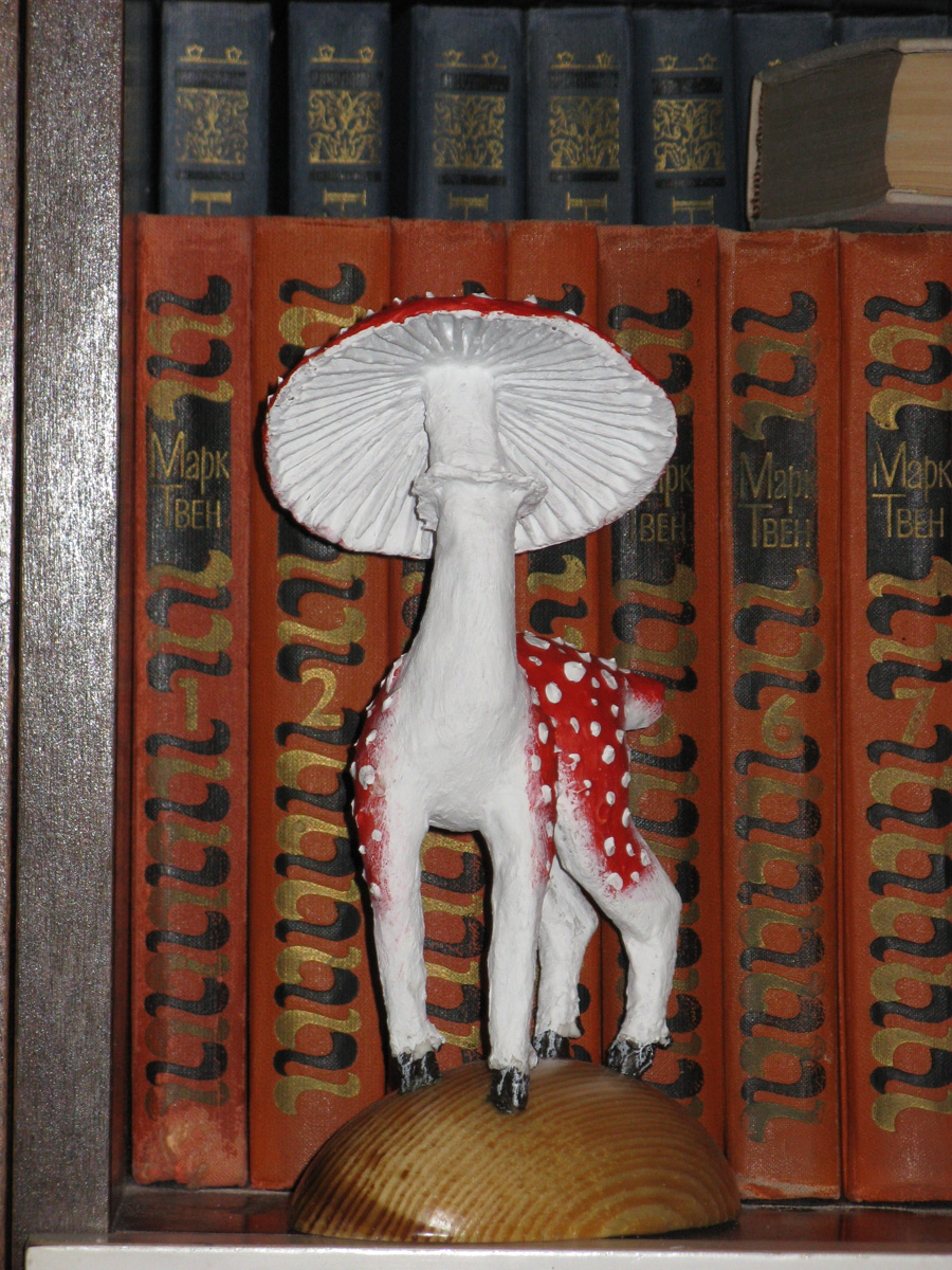 То ли гриб стал четвероногим, то ли олень проникся грибом… Так или иначе, они встретились в едином образе. Гриб и олень сошлись и грацией, и расцветкой. Это сочетание оказалось столь органичным, что даже удивительно, что такой зверь не встречается в обычном мире.