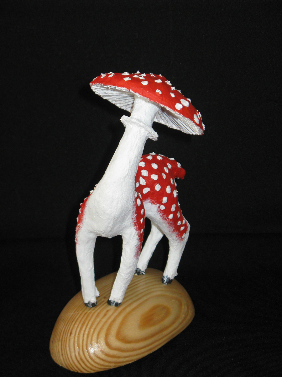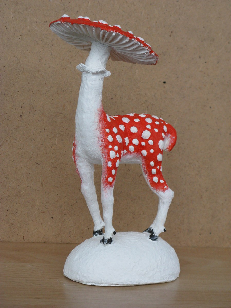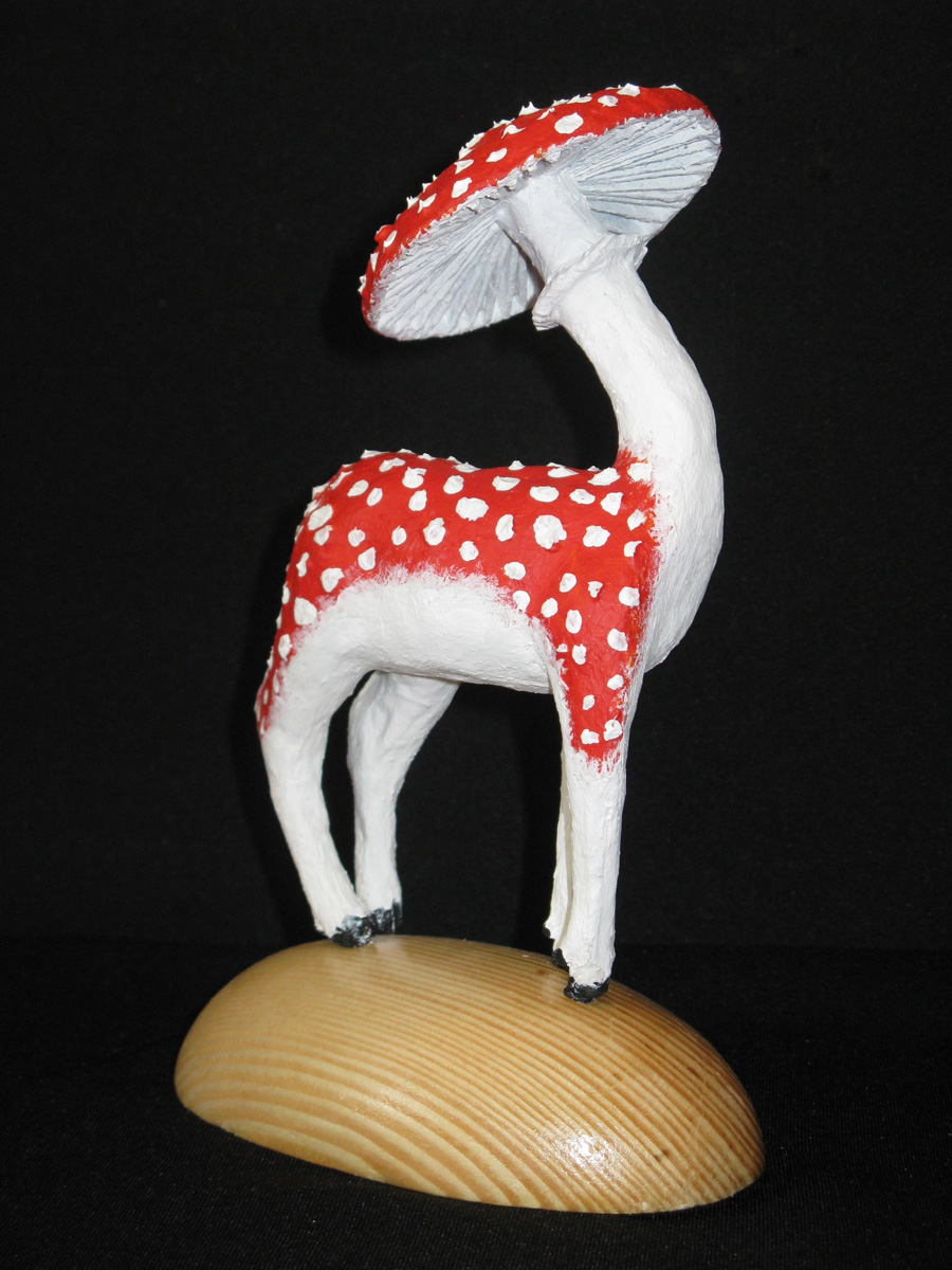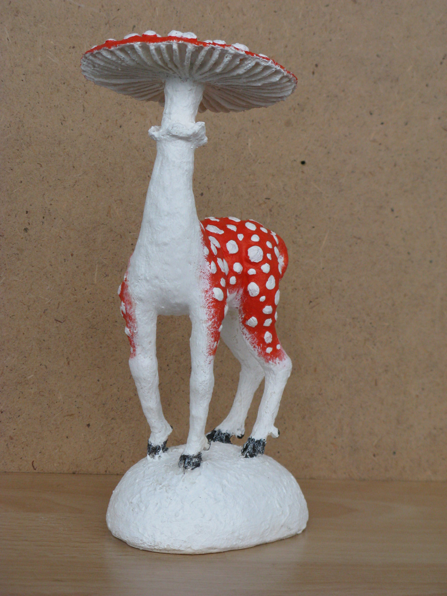 То ли гриб стал четвероногим, то ли олень проникся грибом… Так или иначе, они встретились в едином образе. Гриб и олень сошлись и грацией, и расцветкой. Это сочетание оказалось столь органичным, что даже удивительно, что такой зверь не встречается в обычном мире.